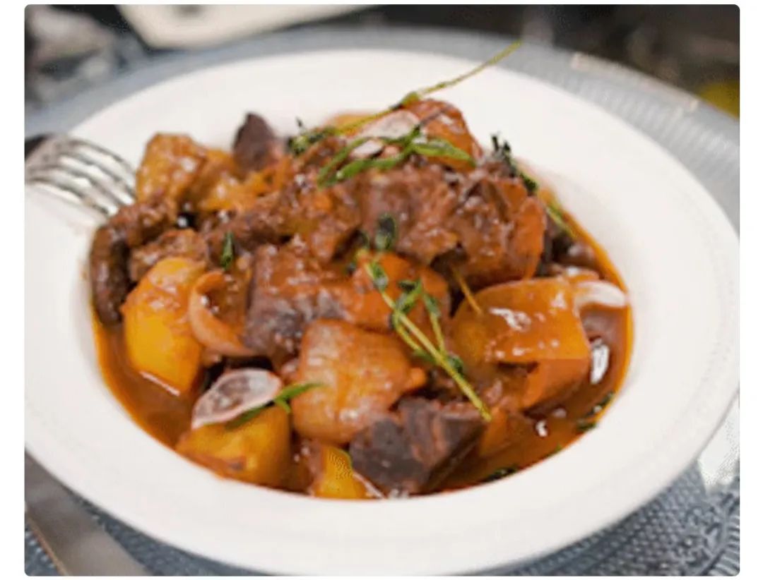 牛腩500g,红酒1瓶,面粉50g,洋葱、胡萝卜、土豆、五花肉适量,百里香、大蒜、橄榄油、黄油少许