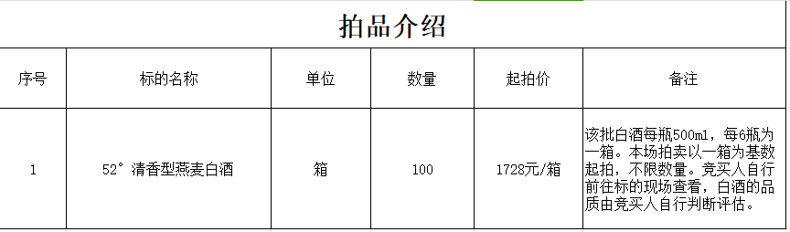 受委托,我公司于2024年2月19日上午10时起至2024年2月28日上午10时止在中拍平台对“一批清香型白酒”面向社会进行公开拍卖。