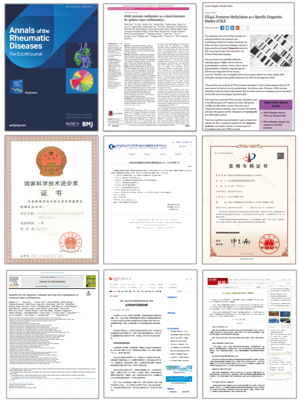 2、 “红斑狼疮诊治关键技术创新与应用”入选 2017 中国十大医学进展;