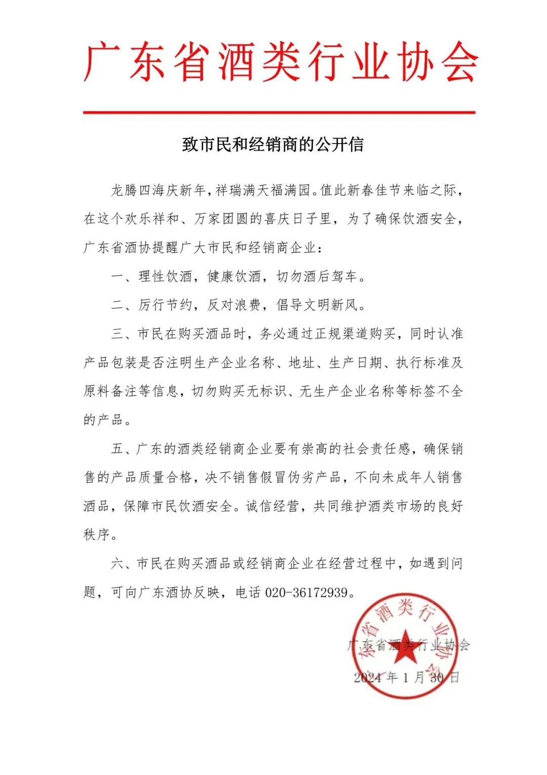 2024年春节将至,为确保节日期间饮酒安全,广东省酒类行业协会近日发布公开信,向广大市民和经销商企业发出提醒。