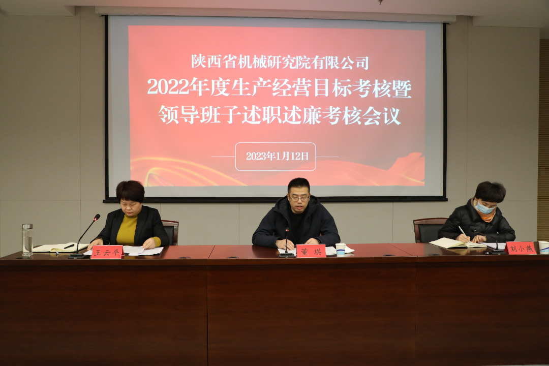 2023年1月12日,陕西省机械研究院有限公司2022年度生产经营目标考核暨领导班子述职述廉会议圆满举行。陕西科技控股集团党委委员、副总经理董琪参加。公司领导班子成员、全体中层干部、副高以上职称人员及部分职工代表参加会议。会议由公司党委书记、执行董事、总经理王云平主持。
