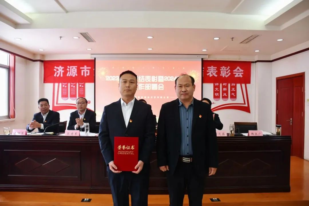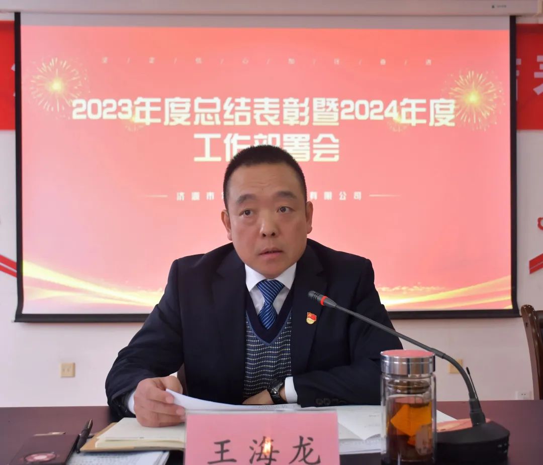龙启新程,匠心筑梦。2月3日,市农开公司召开2023年度工作表彰暨2024年度工作部署会,会议总结了2023年度工作成效,安排部署了2024年重点工作,表彰了一批先进集体和先进个人。公司本部及子公司全体干部职工参加,支部书记、董事长王海龙作讲话。
