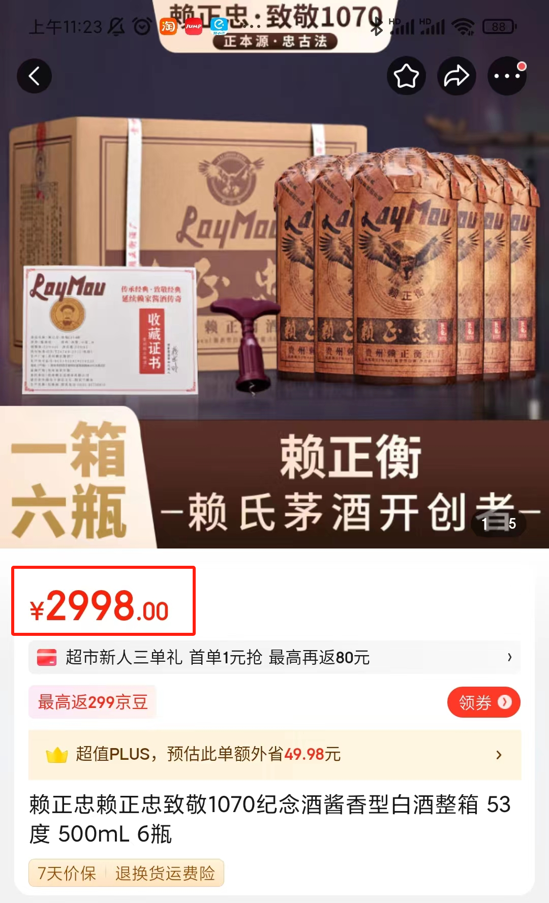 推荐理由:想尝尝酱香酒,可是正品茅子实在是太贵了,讲究性价比的时代,赖正忠就是不错的选择!土陶瓶更有益于白酒的老熟,使酱香口感醇厚绵柔,好酒越陈越香,自然回味悠长香气幽雅细腻,来一口,美!茅台镇历来是黔北名镇,古有“川盐走贵州,秦商聚茅台”的写照,同时也是中国酱酒圣地,域内白酒业兴盛天下。茅台镇盛产的茅台酒秉承传统“12987”酿酒工艺和独特的酿造技术曾一度被称之为“国酒”。茅台酒虽好,但是起步两三千,普通人很难买得到不说,买得到也不一定是真品;一勾一兑,价格低廉的散装酒,就成了动辄几千元的高端茅台酒。让许多爱酒人士望而止步!其实想饮好酒,不止有贵州茅台。茅台镇同时期传承本地工艺的还有很多酒厂,这些酒厂仅仅因为名声远不如贵州茅台而鲜为人知,赖正忠致敬1070产自坐拥197年历史传承的赖正衡酒厂,前身是建于1826年(道光年间)的“烧春酒坊”,传承至今已有五代。2011年,1瓶产于1935年的赖茅酒,拍出了1070万,这是中国白酒拍卖史上的标王!赖家茅酒打破了此前”汉帝茅台”890万元的拍卖纪录,登顶“中国白酒老大哥”的宝座~赖家茅酒前身是“茅台烧春酒”。这瓶赖正忠致敬1070酒,则是延续赖家酿酒工艺的酱香白酒:香气幽雅细腻、酒体丰满醇厚、回味悠长,是赖茅酒老口感的延续,也是赖茅酒再创新标的开端~采取原始、古老、传统的“12987”酿造技术,是蒸馏中仅有的独特工艺,入选国家非物质文化遗产。所谓“12987”,简单来讲,就是“一个酿酒生产周期、两次投料、九次蒸煮、八次发酵、七次取酒”。从重阳下沙开始,到到次年重阳节前,第七次取酒结束,历经春夏秋冬四季,一年才能完成一个酿酒生产周期。从生产到出厂至少也要经过3-5年时间,其中就有一年是耗费在生产上!直接以高粱,小麦,水为原料,纯粮固态酿造,入口顺滑,酱香浓郁,好喝不上头;传统12987大曲坤沙工艺,53%Vol酱香型,酒体醇厚,回味悠长。赖正忠·致敬1070是赖家匠心的传承,还原当年拍卖1070万的赖茅酒的酿造工艺,采用同样瓶高16.5厘米、直径7.8厘米的人工烧制土陶瓶;土陶瓶更有益于白酒的老熟,使酱香口感醇厚绵柔,好酒越陈越香,自然回味悠长~坚持采用三个人工——人工酿酒、人工烧制容器土陶瓶、人工贴标反复检验装箱;还原拍卖1070万赖茅酒的酿造工艺,每一箱都附带有向”中国白酒老大哥“致敬的专属收藏证书,具有收藏价值!!精致土陶瓶窖藏,还有收藏证书,不管是自己喝还是送礼都很有面子~坐拥197年历史传承的赖正衡酒厂,前身是建于1826年的“烧春酒坊”。据载清道光年间,赖家先祖赖正衡曾任军统带职务,后卸甲归田,在贵州茅台村创办“茅台烧春”酒坊。1915年,在世界名酒云集的巴拿马万国博览会上,酱香型赖氏茅酒一举夺得金奖,名扬天下~