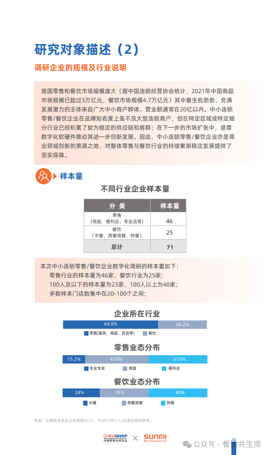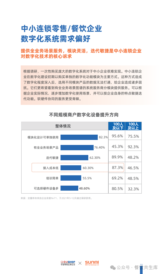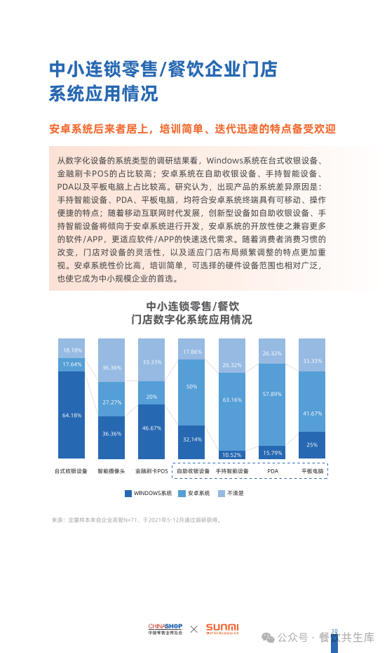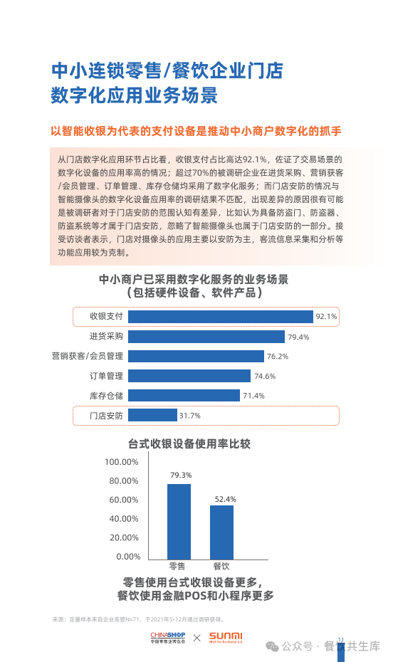 我国零售和餐饮市场规模庞大(据中国连锁经营协会统计,2021年中国商超市场规模已超过3万亿元,餐饮市场规模4.7万亿元)其中最生机勃勃、充满发展潜力的主体来自广大中小商户群体,营业额通常在20亿以内。中小连锁零售/餐饮企业在品牌知名度上虽不及大型连锁商户,但在特定区域或特定细分行业已经积累了较为稳定的供应链和客群:在下一步的市场扩张中,需数字化软硬件推动其进一步创新发展。因此,中小连锁零售/餐饮企业亦是商业领域创新的策源之地,对整体零售与餐饮行业的持续繁荣稳定发展提供了坚实保障。