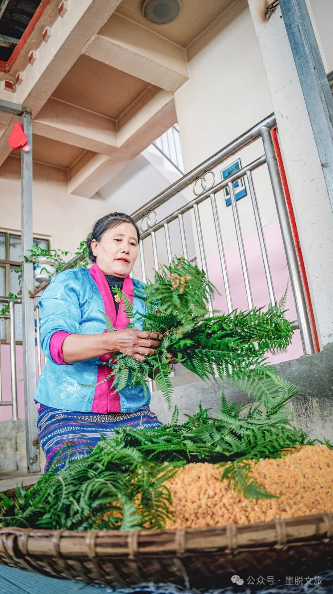 搅拌均匀,铺平后盖上蕨菜叶进行发酵