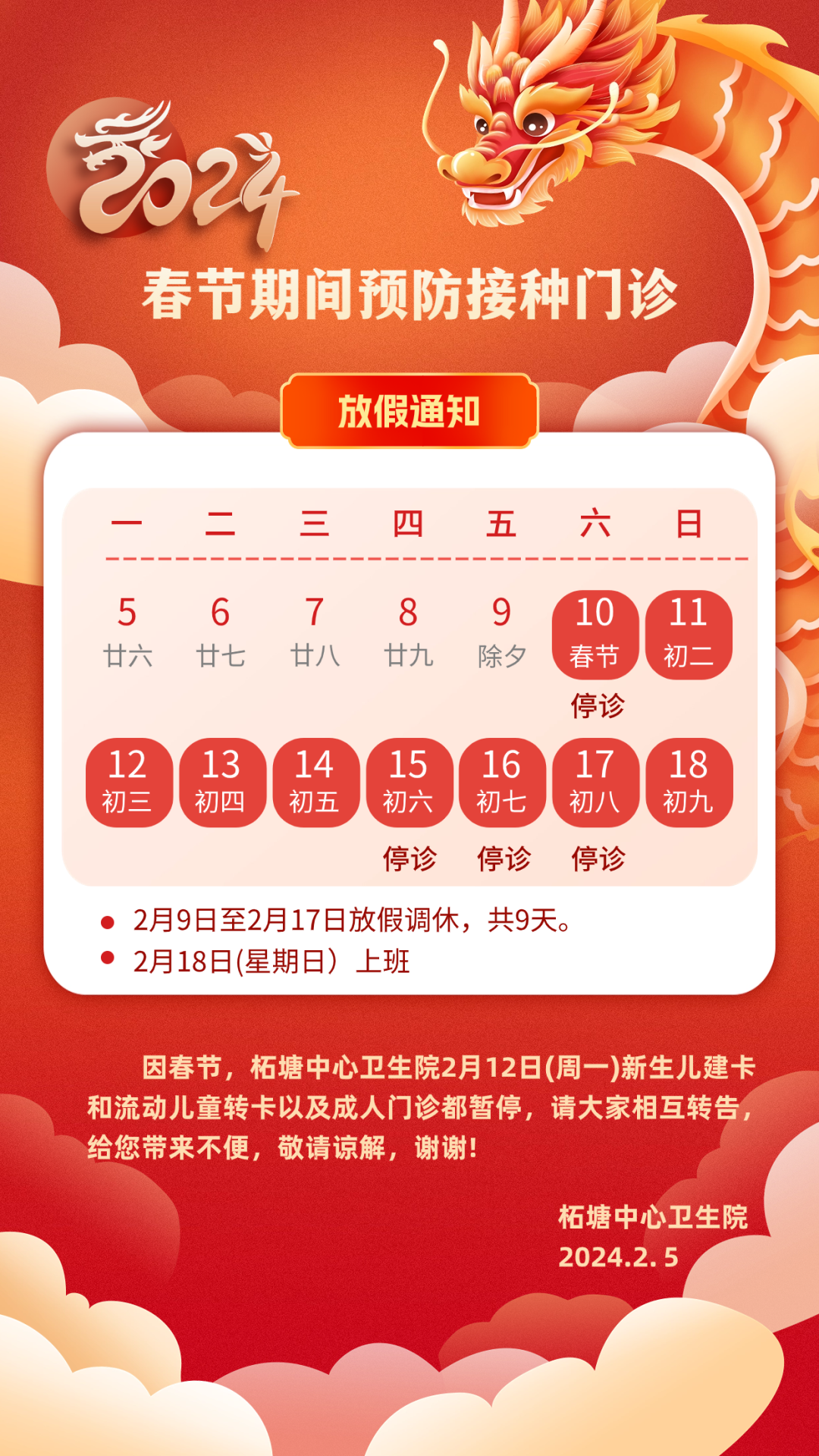 柘塘中心卫生院2024年春节期间门急诊、预防接种门诊安排