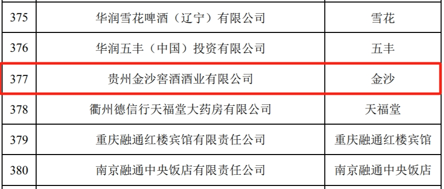 中华老字号!贵州金沙窖酒酒业有限公司上榜