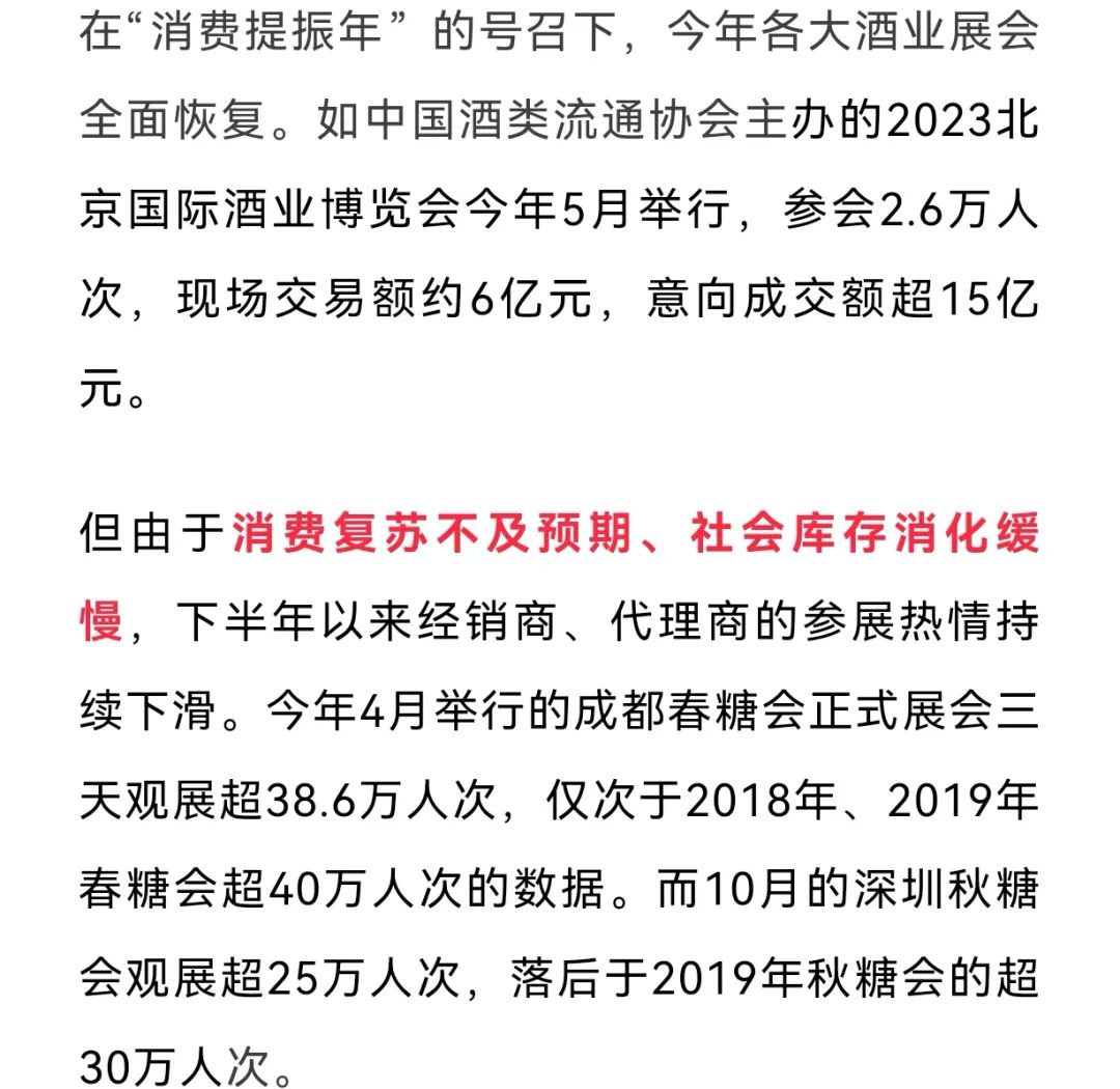 中国酒类流通协会表示:因众多参展单位来电来函,表示经销商及代理商积压库存过多,无法进行正常采购。