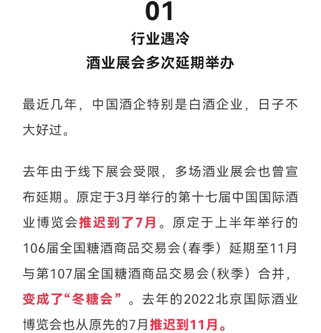 近日,中国酒类流通协会发出通知:经研究决定,2023杭州国际酒业博览会延期召开,将与2024北京国际酒业博览会合并召开,时间为2024年5月25日-27日。