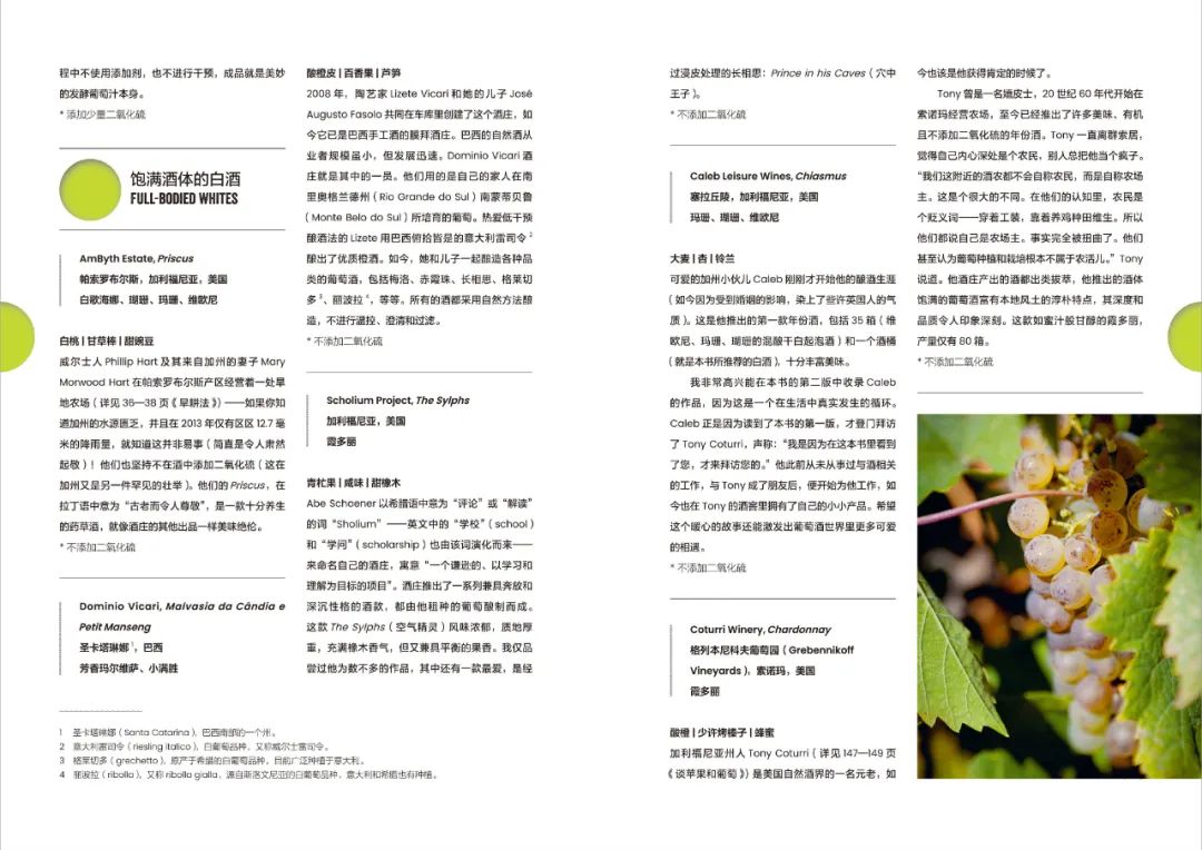 什么是大家所说的“自然酒”?为什么它受到越来越多人的喜爱与关注?那些关于自然酒的传闻——自然酒更有益健康,自然酒不好喝,自然酒不能长途运输,自然酒不能陈年等等,到底孰真孰假?葡萄酒大师伊莎贝尔·莱杰荣(Isabelle Legeron)将深入浅出阐释自然酒相关概念,带领我们重新认识现代葡萄酒业和脚下的土地。她探访关键人物、葡萄园与酒窖,并分类品鉴自然起泡酒、白酒、橙酒、粉红酒、红酒、半干型与甜型酒,为你探索葡萄酒世界打开一扇崭新的大门。忘了你喝过的那些葡萄酒吧,来一杯无添加的纯正自然之味!2009年,伊莎贝尔·莱杰荣成为法国第一位荣获葡萄酒大师(MW)头衔的女性。这个头衔有多难拿呢,自1953年它出现以来,平均每年不过5个人能顺利通过考核,从而成为世界范围内公认的葡萄酒大师,并且能够在名字后加上MW(Master of Wine)。她曾被《财富》杂志评为“2017年度餐饮界最具创新性的女性”之一,也曾被《名利场》评为“2017年世界上最具影响力的50名法国人”之一。她是多间国际知名餐厅的葡萄酒顾问,更是众多葡萄酒奖项的评审团成员,包括“品醇客世界葡萄酒大赛”“国际葡萄酒挑战赛”等等。2012年,她创办了RAW WINE,如今已成为有机、生物动力法等低人工干预葡萄酒生产者的知名社群。这也是“唯一一个要求酒农公开葡萄酒制作过程中添加剂或酿造方法的展会”。该社群每年会在伦敦、柏林、纽约、多伦多、洛杉矶等多地举办自然酒展,引领全球自然酒风潮。她所写的第一本书Natural Wine: an introduction to organic and biodynamic wines made naturally (即《自然酒》),广受好评,被译成十种语言在世界范围内出版。“2012年,仅仅三家葡萄酒公司的产量就近乎全美国销量的一半,在澳大利亚则是排名前五的葡萄酒公司的产量占到全国销量的一半。”显而易见,“葡萄酒是什么”和“印象中的葡萄酒是什么”是截然不同的。如果你翻阅字典,就会发现葡萄酒的定义很简单,即“发酵后的葡萄汁”。不幸的是,时移势易,这个定义逐渐变成“使用X、Y、Z等过程发酵后的葡萄汁。”Bernard Bellahsen和他的马Cassiopée无论现代酿酒工业的发展如何,始终有一群人“笨拙地”克服万难,用自然的方式来酿酒。伊莎贝尔要做的,便是通过自己的一手调查——对话、访谈、大量品酒,来致敬“自然酒”,以及这群为之努力的人。如果你期待着本书给你带来一些“惊天秘密”,那么失望将是难免的,里面的故事再真实不过,讲述的道理也再真诚不过。第一部分,从葡萄园、酒窖、品酒以及相关误解,清晰阐述自然酒如何定义、如何酿造、如何品尝;第二部分,从匠人及局外人的视角,展现自然酒何以从一般酒类中脱颖而出,得到独立的分类,又是何时何地成为世界范围的潮流;第三部分,可以说是纯纯的干货,一部完整的葡萄酒大师推荐酒单(共151种酒)。每个部分的内容,都基于真实的人物采访与实地考察,穿插大量的匠人故事与传奇酒庄。阅读本书,更像是随着葡萄酒大师进行了一次全球葡萄酒考察之旅。法语中vivant这个词,意为“鲜活”,经常会被拿来形容自然酒的特质。这也是自然酒区别于一般酒类的最大特征,它是一种有生命力的酒。这种生命力,自葡萄园的土壤,持续迸发至一瓶酒被开瓶的瞬间,甚至是被开瓶后的数天、数周。下:Frank Cornelissen正在用低干预法照料葡萄藤从葡萄生长的那片土地起,手中这杯酒的风味就已经开始形成了。生产自然酒,“有机种植”不过是一个基础的必要条件,甚至对酒农来说,都是不必要刻意提出的。他们看重的,是葡萄园的生命力。这种生命力主要来自三个方面:土壤本身的活力、自然耕种法的应用、对风土的尊重。比如拒绝单一化种植,提倡物种多样性,又或是采用有机农耕法、生物动力法等尊重生态的耕种方式。试想一片现代化的大农场,一眼望去除了葡萄还是葡萄,连杂草都少得可怜,又何谈风土与风味?“葡萄酒是一种农产品,是由各种有机生物在特定地点和特定时间内共同创造的成果,是不同生命体创造的结晶,其实这些综合起来就是 ‘风土’,如果过没有这些元素,葡萄酒便无法传递出产区的风土。”不同的酿酒过程,给酒带来的微妙差距,往往是肉眼无法感知的。伊莎贝尔为了证明自己对“酒的生命”的感受并非纯粹的感性认识,她请科学家在显微镜下对两种同类不同源的酒进行对比。一个是传统大批量生产模式下,年量产数万瓶的品牌葡萄酒,另一瓶是来自一家自然酒酒庄,年产不超过3000瓶的Auksinis。事实证明,显微镜下的Auksinis,满是酵母菌,且大部分都处于活性状态,另一瓶则死气沉沉。这也正诠释了自然酒精神:没有添加剂也没有移除任何葡萄的天然成分。你可能会问,显微镜下的酵母菌多少,与我喝的这杯酒好不好喝,能有多大关系?当然有,越喝越能体会,并且酒存放时间越久越能展现出来。一般而言,不经干预的自然发酵分为两个阶段:酒精发酵(酵母作用),然后是乳酸发酵(酵母菌作用)。酵母菌是至关重要的一环,它以量取胜,几乎决定了酒后期的风味。然而每一年的环境不同,产生的酵母菌数量也存在巨大差异。传统的大批量生产商,为了维持“稳定性”,会在酿酒的不同阶段加入二氧化硫,来塑造统一的口味。而自然酒生产者,不会加一丁点儿的二氧化硫,除非是迫不得已。“即便只加一点点二氧化硫,葡萄酒的变化也很明显,它的口