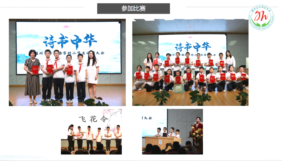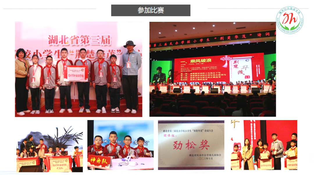 各班诗词比赛选拔出的优秀小选手们,对于诗词佳句脱口即出、信手拈来,代表南校区走出去就是一张亮眼的文化素养名片。他们多次在市级诗词比赛中脱颖而出,今年10月,我校代表队受邀参加了在孝感华茂外国语学校举办的湖北省第三届民办学校小学生“荆楚华茂”诗词大会,获得“劲松奖”荣誉称号。