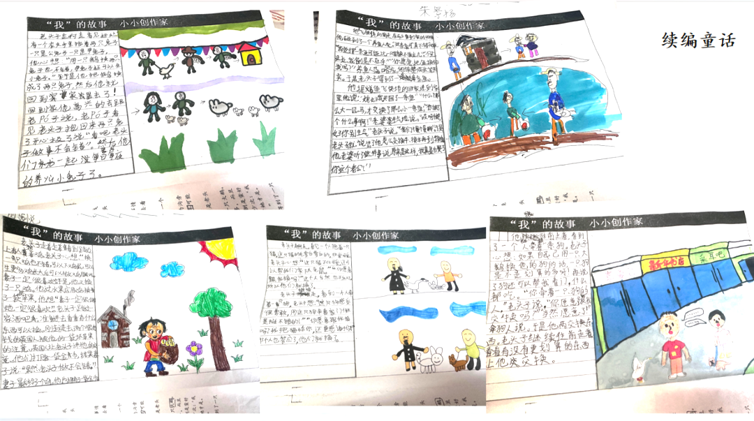 在安琪老师的阅读课上,学生对安徒生童话的热情超乎预期,他们对故事中的角色、情节展现出了浓厚的兴趣。孩子们通过预测、复述、画故事等活动,将课堂氛围热情地烘托起来。孩子们“写”得认真、“画”得开心,在活动中真切地感受到自己编童话的乐趣,产生主动阅读更多童话的动力。