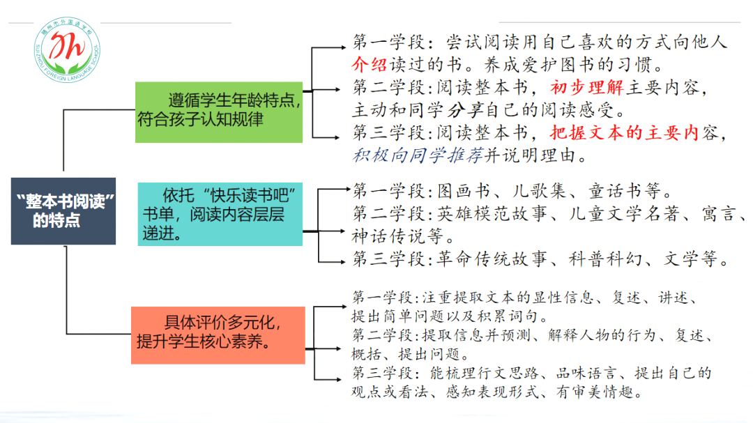第二学段:阅读整本书,初步理解主要内容,主动和同学分享自己的阅读感受。