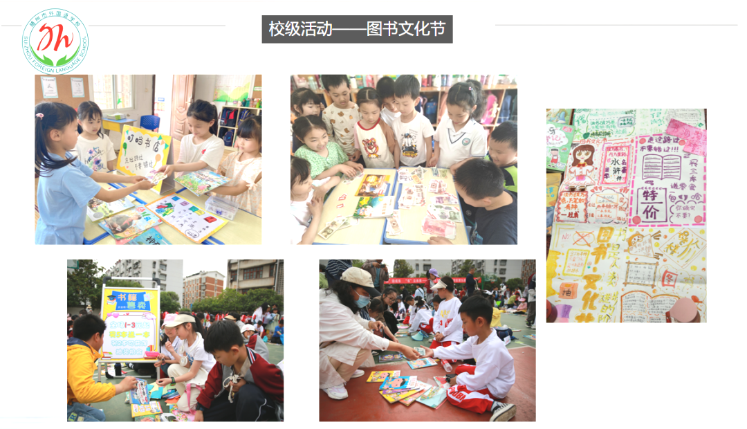 为了切实提升学生们的语文核心素养,实践语言运用,提升思维能力,建立文化自信,促进审美创造,语文组本学期组织开展了各类校级和年级活动。阅读分享会,午间练字,汉字听写大赛,妙笔生花,听说读写,花样层出不穷。我们的传统活动——“图书文化节”活动一直以来都收获着学生、家长及社会各界的一致好评。在图书文化节活动中,学生们带来各自的图书,小组合作设计图书促销方案、创作售卖海报、设计销售话术……大家既售出了自己读过的书,也“淘”到了自己想看的书,使知识流动起来,这样的活动掀起了读书热潮,营造了良好的书香校园文化氛围。