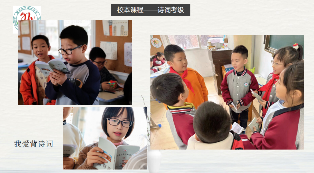 诗词考级只是校本课程——“传统文化经典系列”的第一站,后续我们将继续努力,带领学生们通过校本课程接触到更多不同类型的传统文化经典。