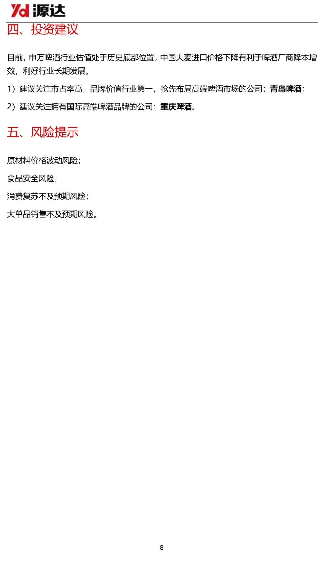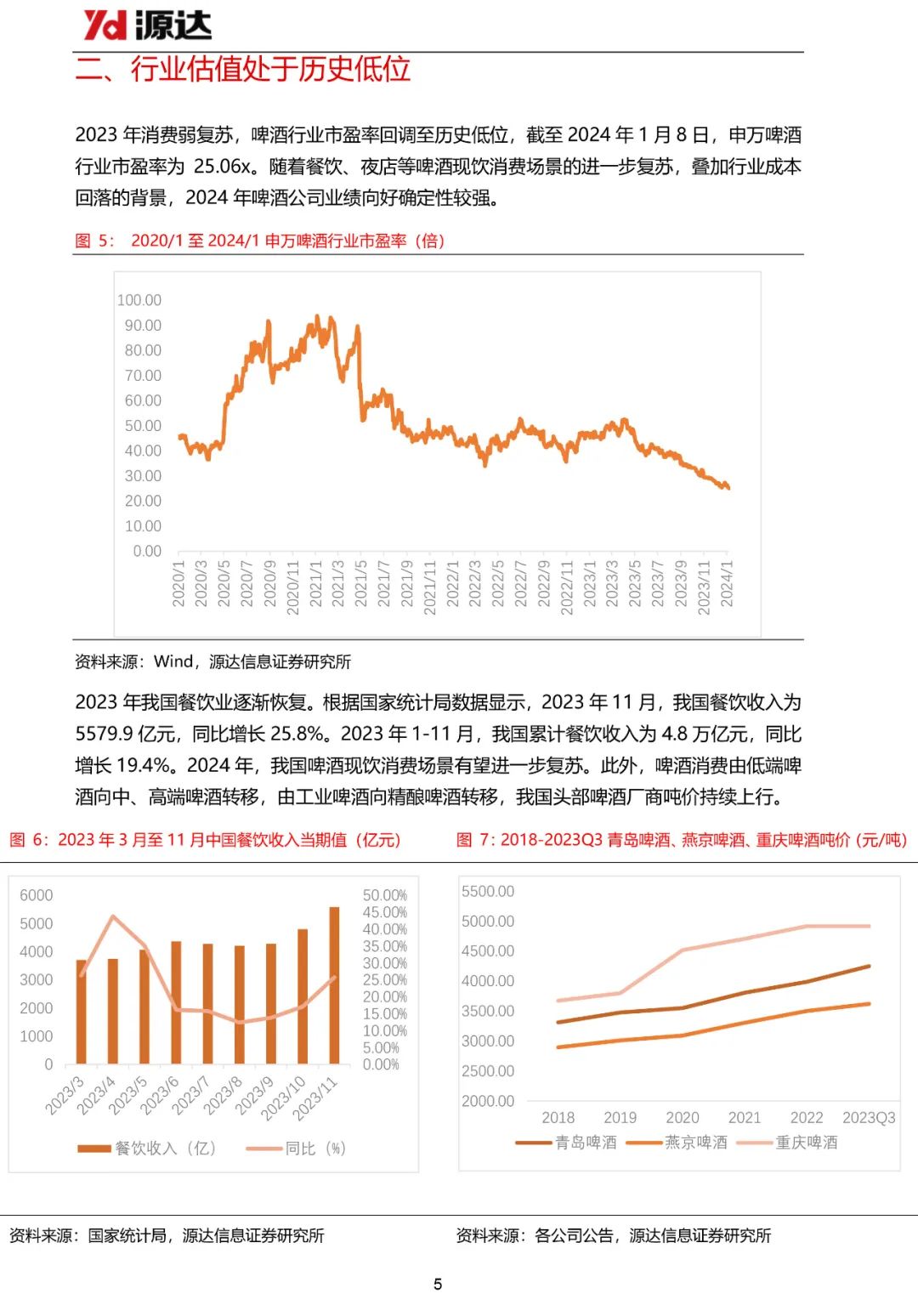 啤酒行业估值处于历史底部,大麦成本下降有望驱动利润提升