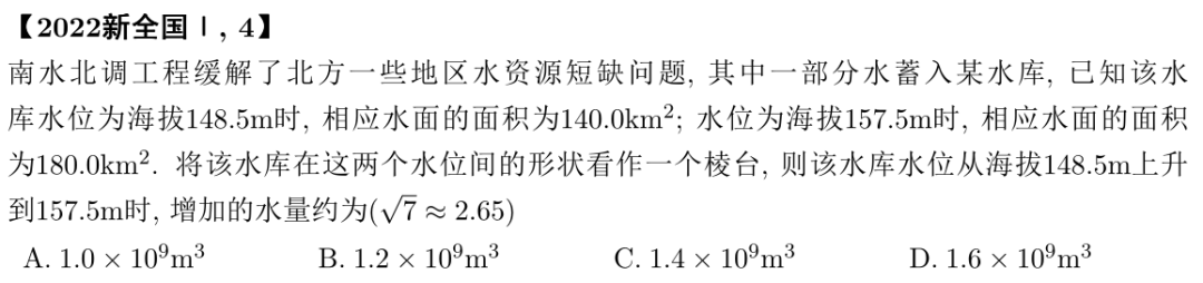 如果想解出第8题,需要会对数字作简单的估计。同学们要通过“找大头、去尾”的方式来估计数据,这样能节约解题时间。这个往年高考也考过许多次,比如,在往年高考中,2019年课标全国Ⅰ卷第4题、2019年课标全国Ⅱ卷第4题、2022年北京卷第7题、2022年新高考全国Ⅰ卷第4题都考察了这一点。