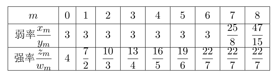 其中, 在第7步算出后, 是弱率, 而是强率, 因此. (无需再比较与3.1415926的大小)