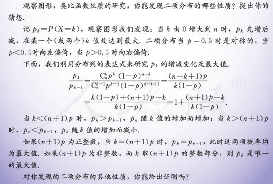 比如,第20题(概率题)有很多同学可能无从下手,其实这题考察了证明数列单调性的方法以及超几何分布,书上有几乎一模一样的叙述。超几何分布单纯是考察定义与性质,而证明数列单调性的方法位于人教A版“二项分布与超几何分布”一节的“探究与发现”部分(82页):