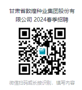 甘肃省敦煌种业集团股份有限公司根据公司发展战略需要,现拟向社会公开招聘员工25名,诚邀社会各界精英加盟,现将具体事宜公告如下:甘肃省敦煌种业集团股份有限公司为酒泉市市属国有农业上市公司,成立于1998年,2004年在上海证券交易所上市(股票代码:600354)。主要从事以玉米杂交种为主的各类农作物种子的研发、繁育、加工、销售,以及番茄酱、番茄粉、脱水菜、啤酒花等农产品深加工等业务,是农业产业化国家重点龙头企业、国家玉米种业阵型企业、农业部首批育繁推一体化种子企业、中国种业十年AAA信用企业,“敦煌飞天”商标为中国驰名商标。公司以“成为中国最有影响力的现代种业引领者”为使命,以“引领现代种业,推动乡村振兴,共创美好生活”为愿景,以“专注改革创新,引领现代种业,承担社会责任”为基本理念,以“忠诚,安全,创新,共赢”为核心价值观。(一)拥护中华人民共和国宪法、遵守国家法律法规,政治坚定,品行端正;(二)身体健康,能够正常履行岗位职责、公司员工的义务,无不良信用记录;(三)应聘员工具备国家承认的专科及以上学历,年龄35周岁以下(以具体岗位条件为准),车间一线操作工、电工、田间管理人员可适当放宽学历要求,退役军人优先;(四)具有胜任应聘岗位所需的专业知识和工作能力,符合应聘岗位要求的其他具体资格和条件。热爱本岗位工作,服从组织分配,具有较强的忠诚奉献、吃苦耐劳精神;(五)有在央企、大型国企、外企、上市公司或北上广深等一线城市同等岗位工作经验者优先考虑。有下列情形之一的不予录用:1.受过党纪、政纪处分或刑事处罚、治安处罚,或正被立案调查的;2.本人或直系亲属参加非法组织、邪教组织或从事其他危害国家安全活动的人员;3.被列入各类失信人员名单的;4.法律规定不能聘用的其他情形的。本次公开招聘均为敦煌种业集团下属分、子公司所需岗位,具体岗位需求及任职条件详见《甘肃省敦煌种业集团股份有限公司2024年招聘岗位汇总表》(附件1)。1.报名时间:2024年3月10日下午6:00前。2.资格审核:本次招聘报名和资格初审通过网络系统进行,不接受电话报名,有意应聘者请扫描下方二维码进行网上报名,并如实详细填写本人情况,并提供本人身份证、学历证书(应届生提供毕业生就业推荐表)、职业资格证书等有效证件电子文档。
