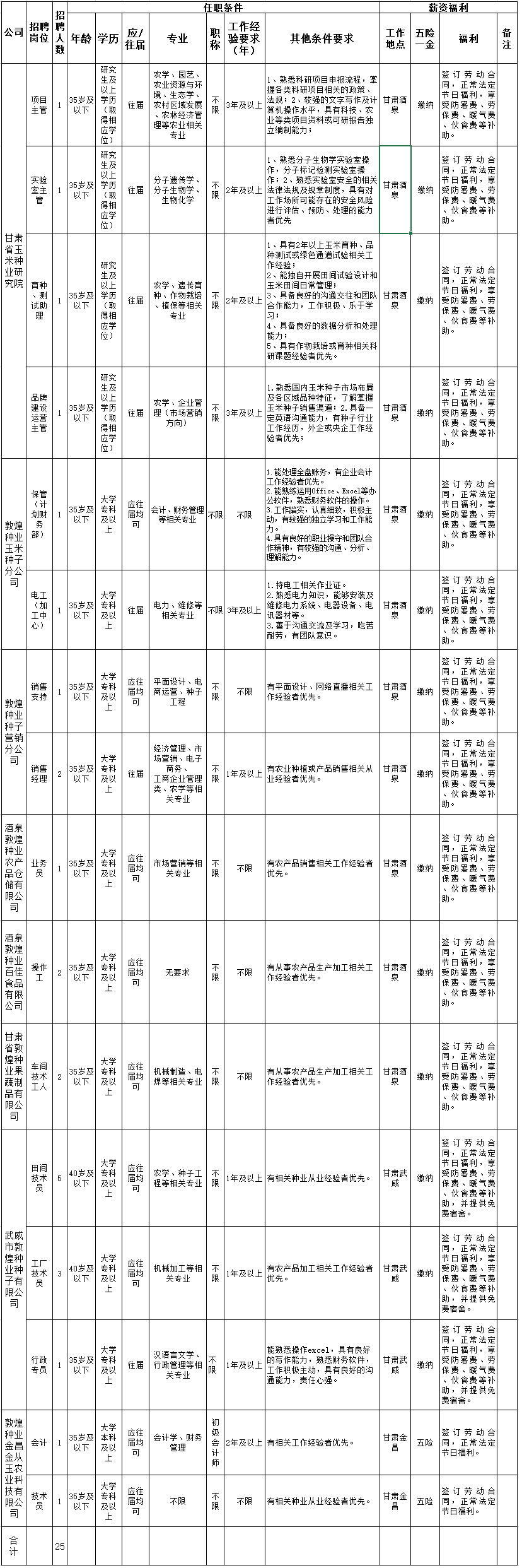 甘肃省敦煌种业集团股份有限公司招聘公告