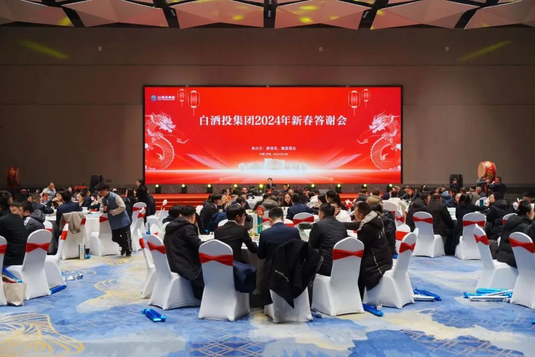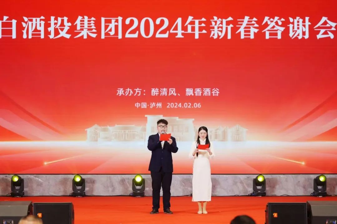 2月6日下午,白酒投集团在泸州国际展会中心举办2024新春答谢会。酒业园区党工委副书记、管委会主任罗了威,党工委委员、管委会副主任张涛,集团党委书记、董事长王洪禹,集团党委副书记、总经理李高和,以及集体公司领导班子、合作伙伴、客商代表等参加活动。