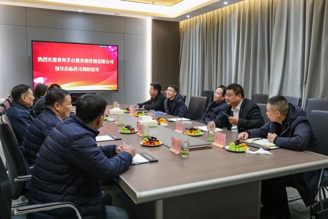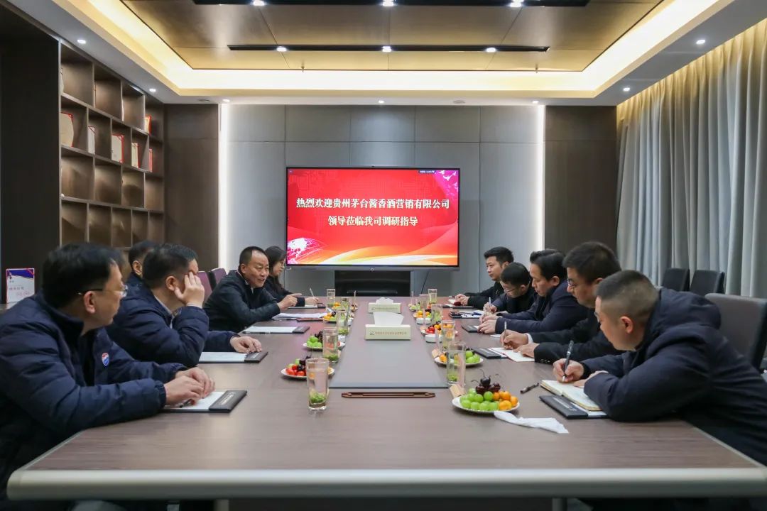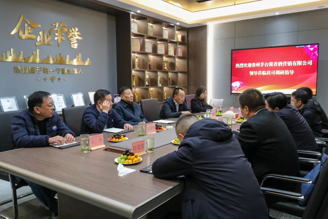 岁聿云暮,新春将至。2023年1月12日,贵州茅台酱香酒营销有限公司党委书记、董事长张旭一行莅临我司调研指导并召开座谈会,陪同调研并出席座谈会的有渠道管理部经理袁李、营销策划部经理唐修德、渠道管理部赵进宏、河南一区负责人李西伟等。河南喜洋洋永盛实业有限公司董事长赵黎明、总经理赵建华率相关业务负责人热情接待并参会。