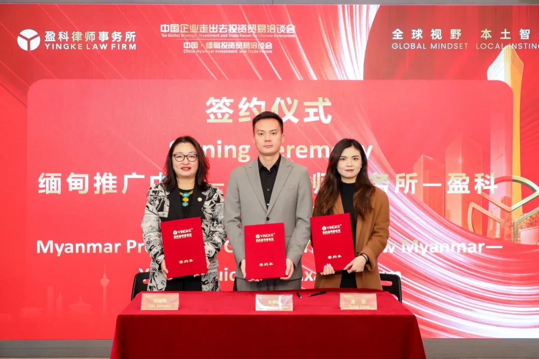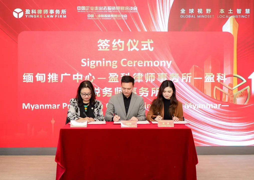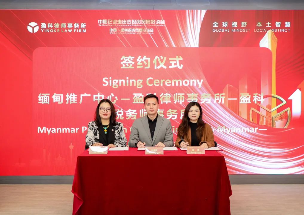 在与会人员的共同见证下,缅甸推广中心与盈科律师事务所、盈科瑞诚税务师事务所签约仪式圆满完成。未来,三方将共建投资贸易的合作平台,为中缅两国客户提供法律、财税等全方面的服务。
