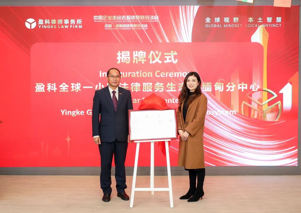 缅甸联邦共和国驻华大使吴丁貌瑞,缅甸驻华大使馆-缅甸推广中心秘书长、中国缅甸经济合作发展促进会联席会长赵章傲,盈科律师事务所全球董事会副主任、中国区董事会主任、中国区执行主任李正,盈科律师事务所全球董事会综合业务部主任何宁宁,盈科瑞诚财税联合创始人、全球执行主任刘俊秀,盈科缅甸(筹)执行主任唐菱共同为“盈科全球一小时法律服务生态圈缅甸分中心”揭牌。盈科律师事务所坚持以市场为导向,秉承“提供机会、促成交易、创造价值、解决问题”服务理念,已累计为超过220万客户提供高度满意的法律服务,其中海内外企业客户超过100万家。盈科将利用平台的国际化优质法律服务资源和畅通全球法律服务的信息渠道,为中缅经贸投资合作提供有力的支持。