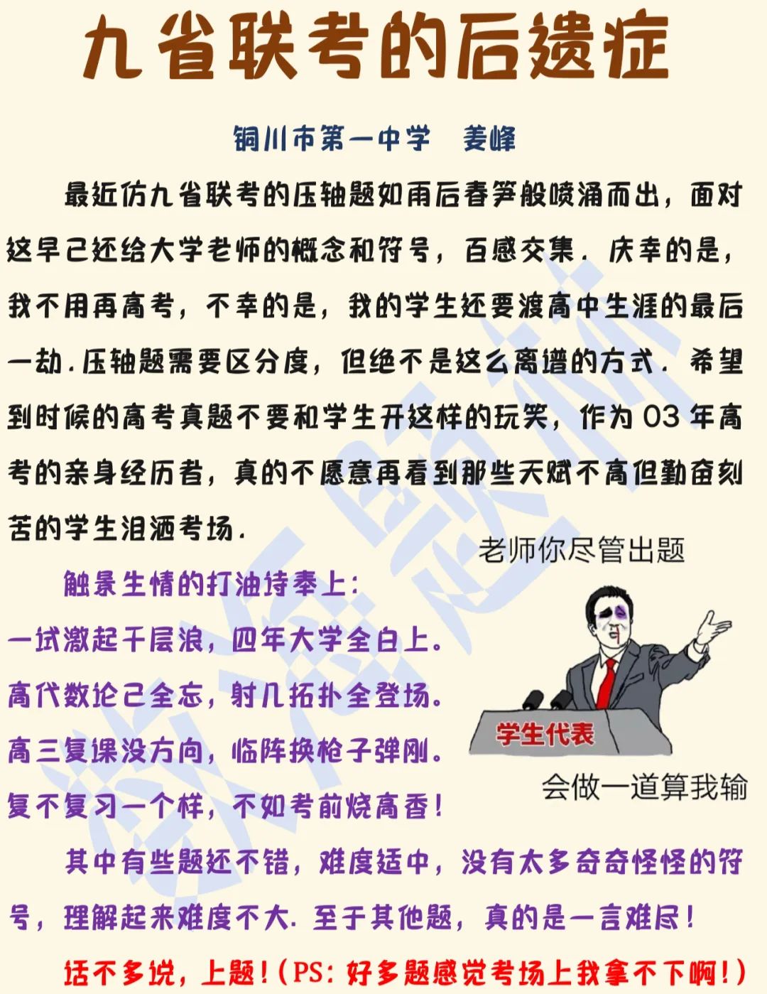 【学生】你尽管出题,会做了算我输。