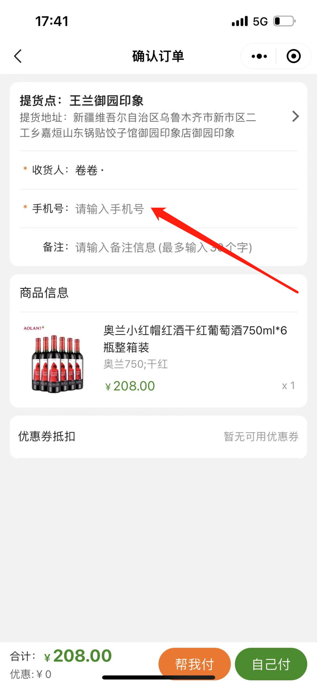 点击结算,确认收货人、收货地址及电话