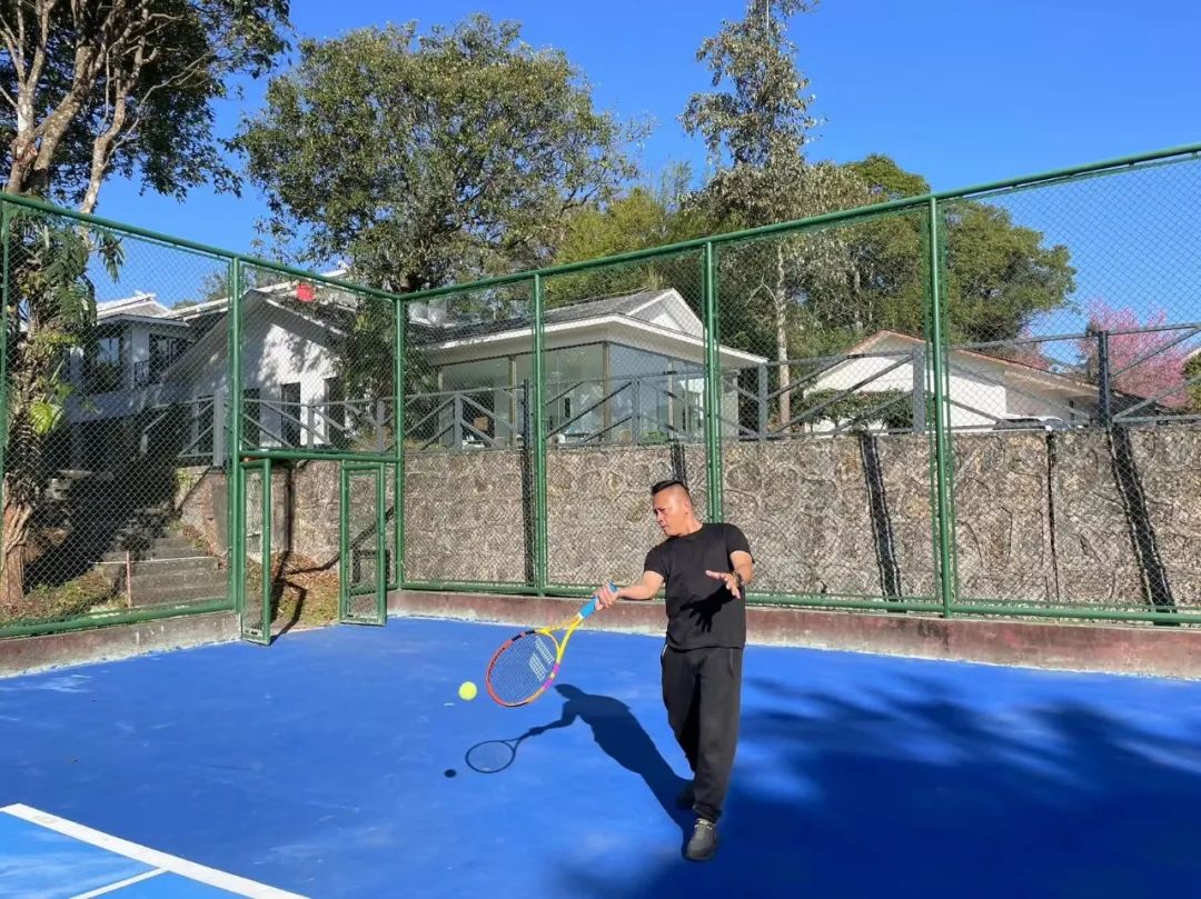 中华普洱茶博览苑新建的网球场位于景区山岚茶苑酒店旁五十米,球场为户外网球场,拥有得天独厚的地理位置,球场运用多层地面涂层工艺建设,面层选用网球场专用弹性丙烯酸材料,可创造卓越的垂直减震效果,能有效防止运动损伤。
