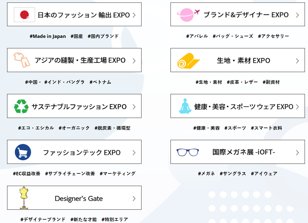 2024年日本东京时尚世界展(Fashion World Tokyo)是日本最大展览公司——励展日本公司(RX Japan)主办的日本规模最大的国际化服装及鞋包面料辅料类专业贸易展会,由日本国际潮流品牌展、日本本土时尚展、日本国际面料辅料展、日本国际时尚代工展(OEM/ODM)、国际可持续环保时尚展、健康美容与运动时尚展、数位智能时尚展、日本东京国际眼镜展、国际设计师展区九大展会组成。