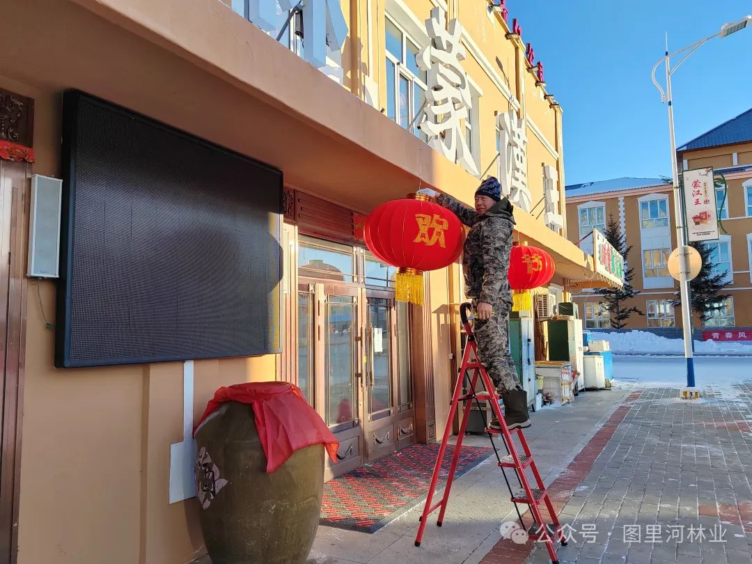 春节来临之际,为弘扬中华民族传统文化,营造干净、整洁、优美的节日环境,2月4日,图里河酒类销售公司精心准备,提前布置,组织职工一起挂灯笼、贴福字,迎接春节的到来。