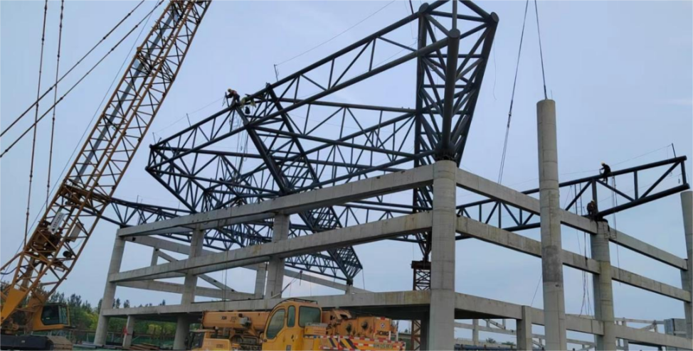 近日,随着一声“起吊”令下,由杭萧钢构战略合作参股公司——山东滨博杭萧绿色建筑科技有限公司(以下简称山东滨博杭萧)参建的博兴县国际会展中心项目最后一榀主桁架缓缓升起并平稳落到主体基础上,主桁架吊装圆满成功!