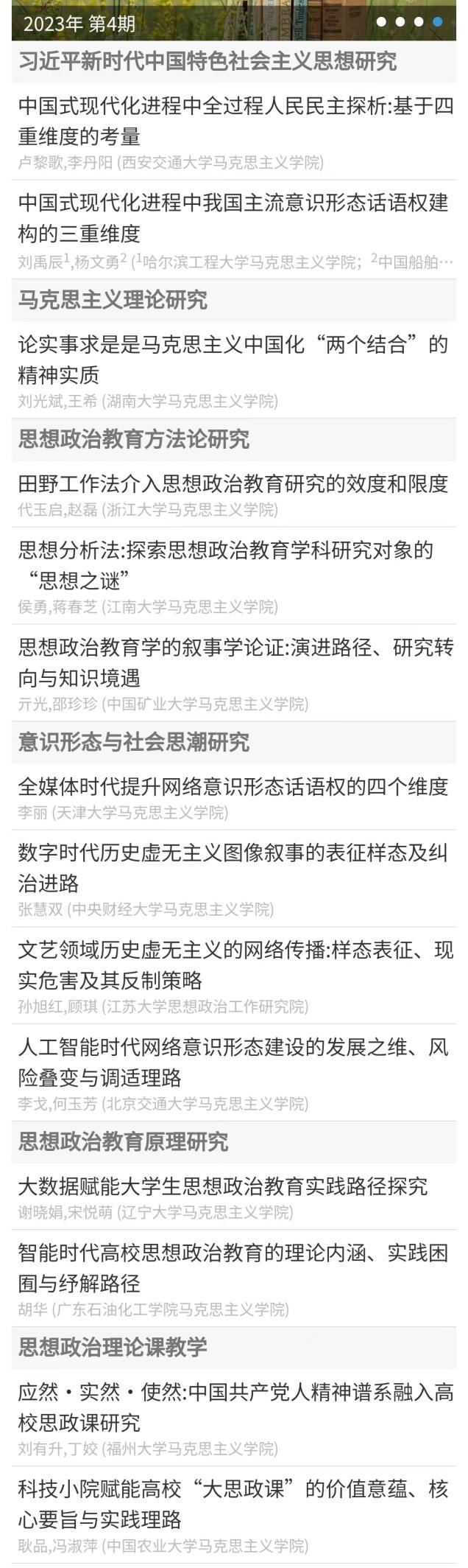 简介:《思想政治教育研究》是由黑龙江省教育厅主管、哈尔滨理工大学主办的全国高校思想政治教育类学术期刊,是黑龙江省高校思想政治教育研究会会刊。该刊1985年创刊,双月刊,国内外公开发行。设有“本刊专稿”、“习近平新时代中国特色社会主义思想研究”、“社会主义核心价值观研究”、 “马克思主义理论研究”、“意识形态与社会思潮研究”、“思想政治教育原理研究”、“思想政治理论课教学”、“思想政治工作”、“文化建设与育人研究”、 “党建研究”、“比较思想政治教育”、 “网络思想政治教育”等栏目。