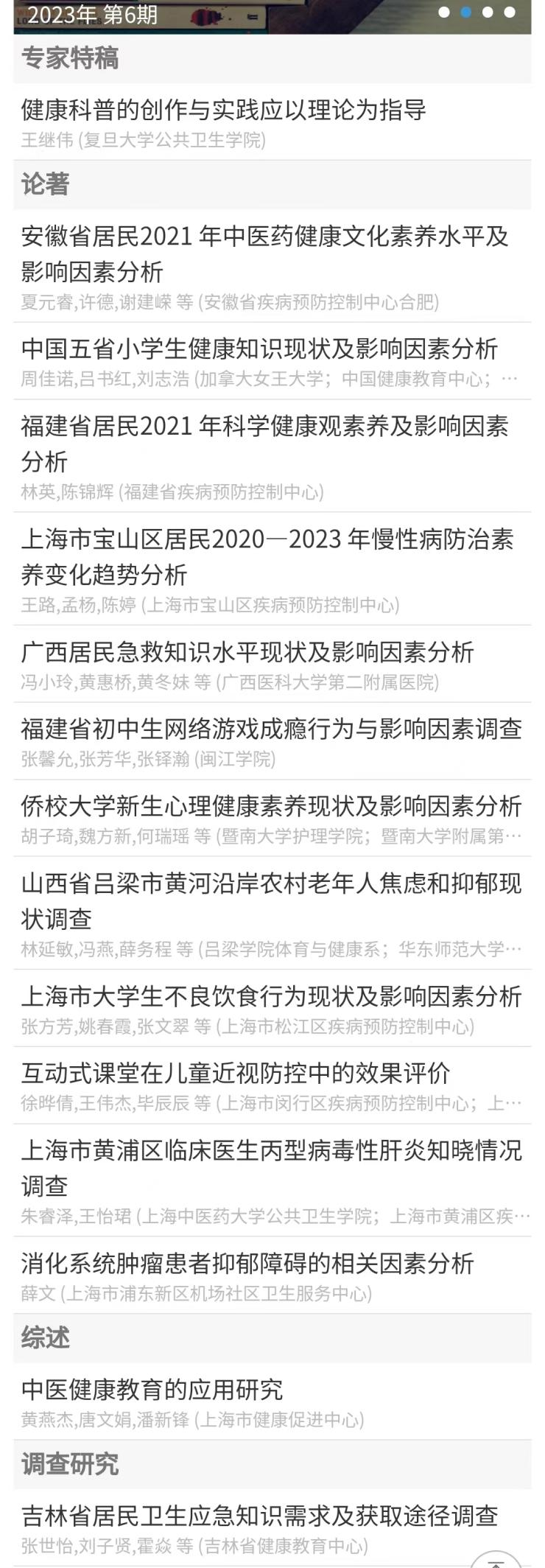 简介:《健康教育与健康促进》由上海市卫生健康委员会主管、上海市健康促进中心主办,国内外公开发行,是我国仅有的两家健康教育与健康促进专业学术期刊之一。设有论著、综述、专家论坛、调查研究、工作探讨、经验交流等栏目。