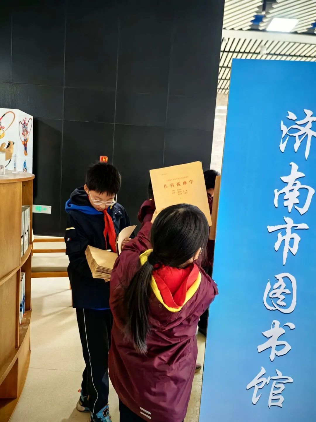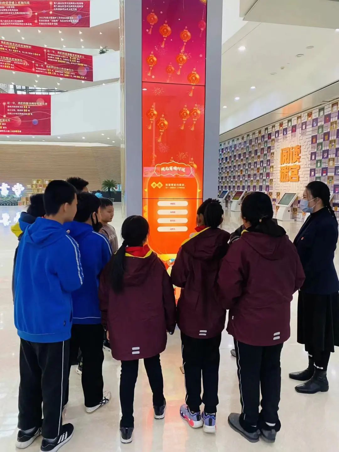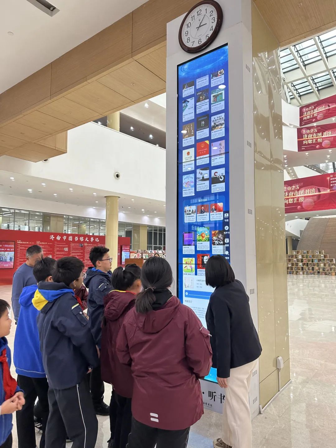 假期里,济南市名士小学五(5)中队的队员们带着对知识的渴望和向往,来到位于济南西部新城省会文化艺术中心的济南市图书馆中心馆,开展寻访活动。