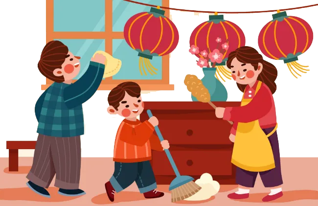 扫尘就是年终大扫除,家家户户都要打扫环境,清洗各种器具,拆洗被褥窗帘,掸拂尘垢蛛网。扫尘用意是要把一切穷运、晦气统统扫出门,以祈来年清吉。