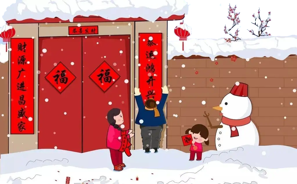 年廿八、廿九或三十日家家户户“贴年红”(年红是春联、门神、横批、年画、“福”字等过年时所贴的红色喜庆元素统称)。