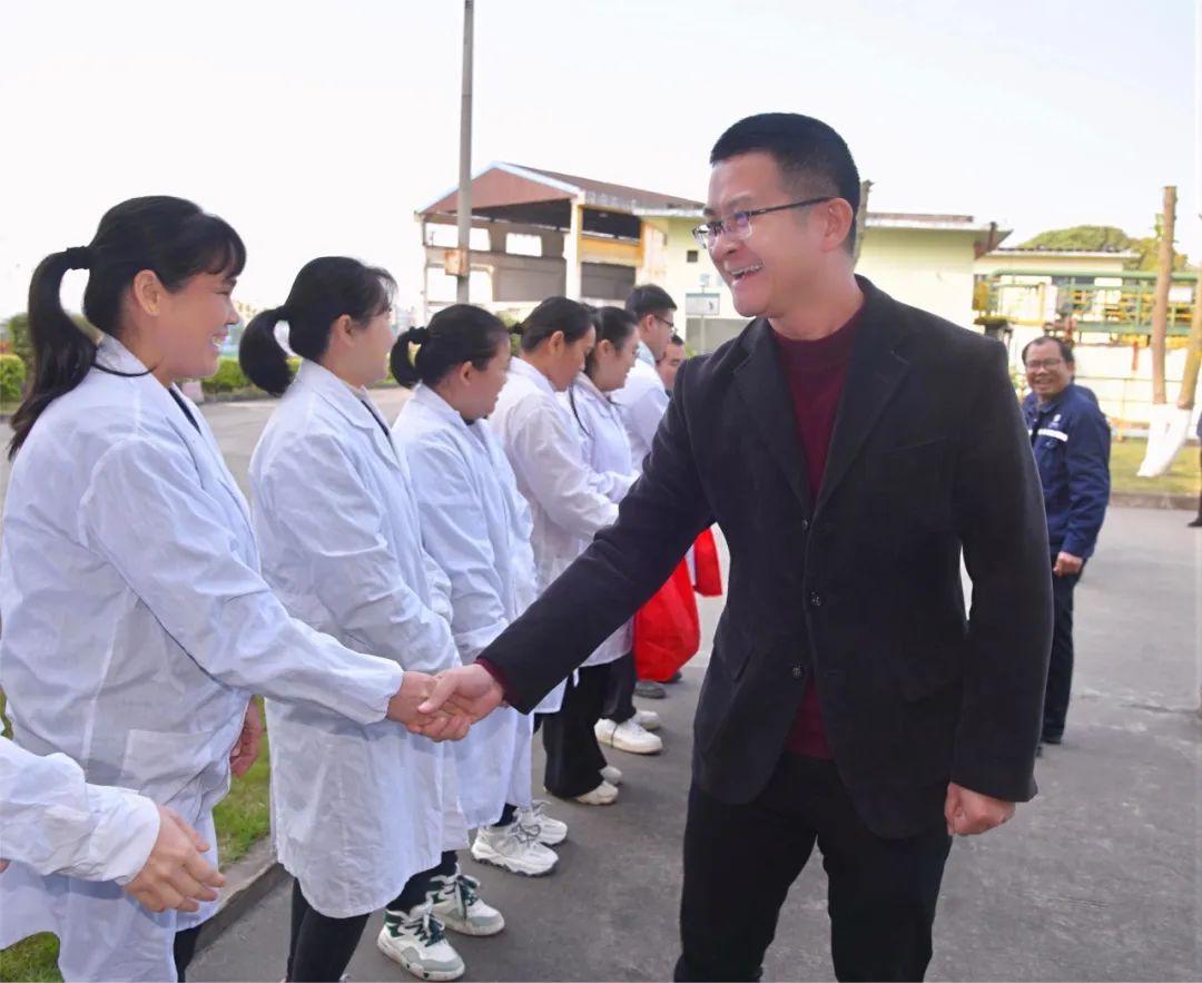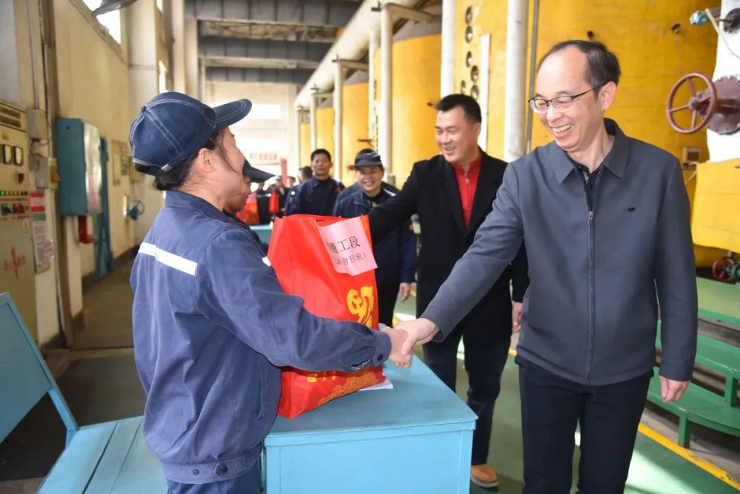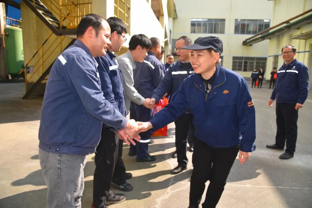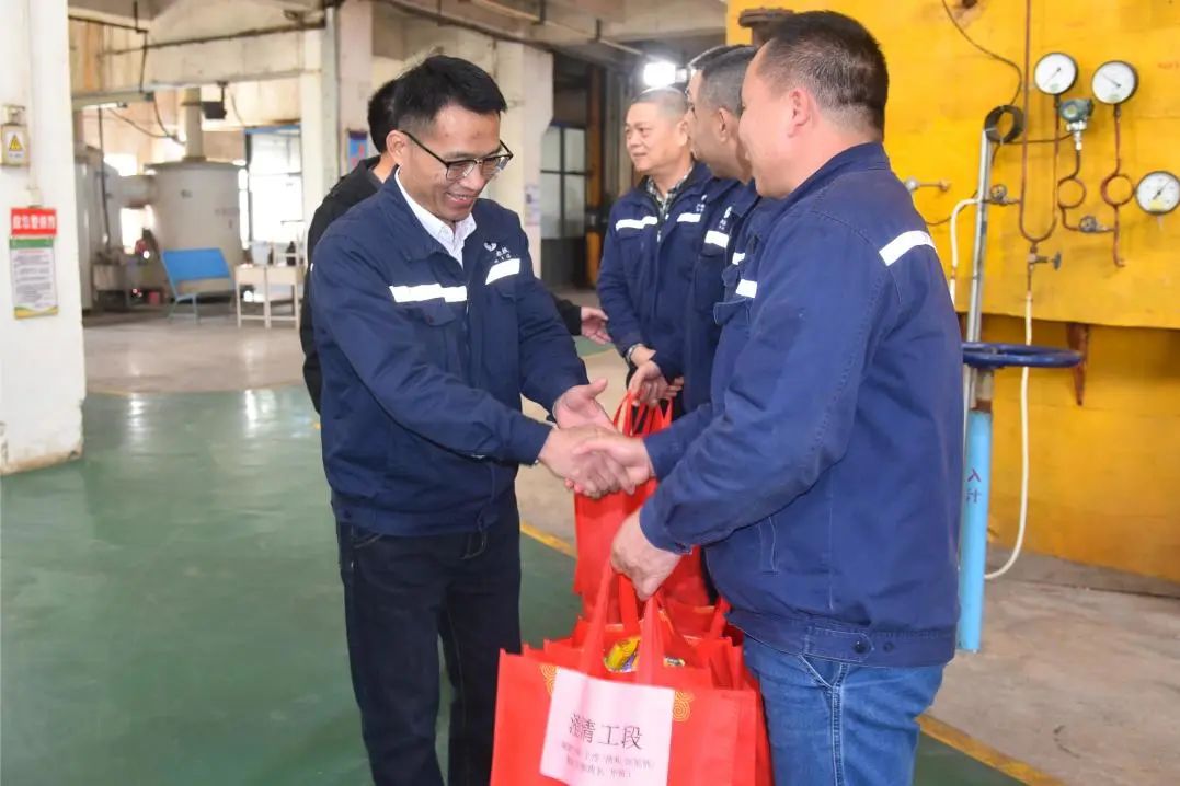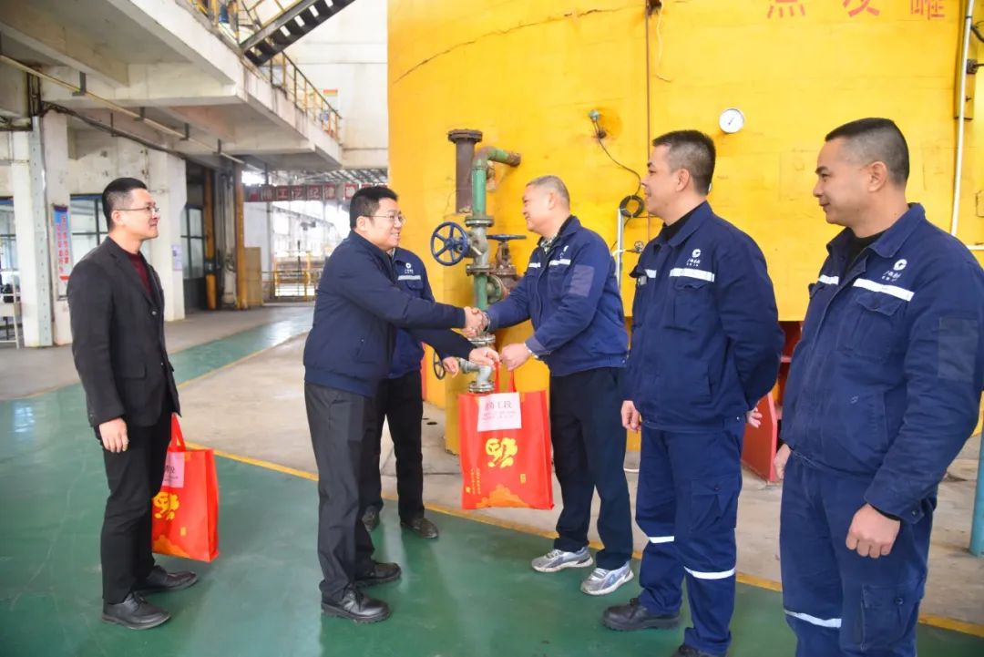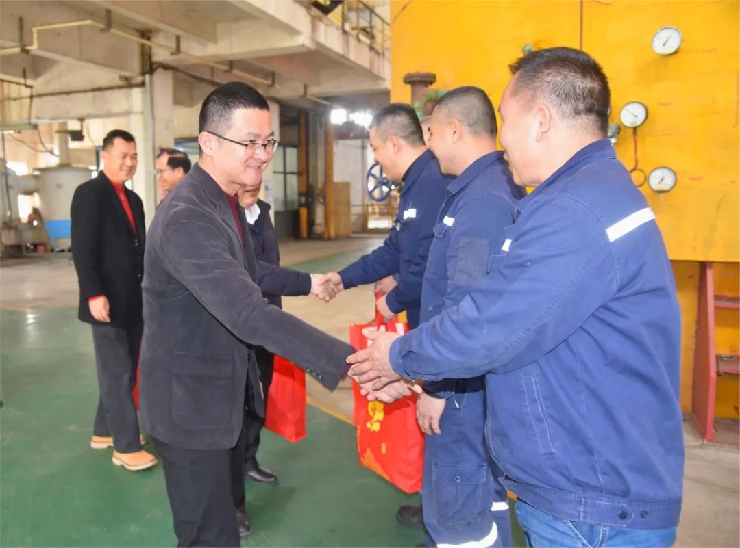 浓浓关怀暖人心,声声祝福鼓干劲。2月10日,农历大年初一早上,广农糖业党委副书记、总经理刘宁率队到伶利制糖公司慰问春节期间坚守岗位的一线员工,代表广农糖业领导班子向伶利制糖公司全体员工送上新春祝福和诚挚问候。