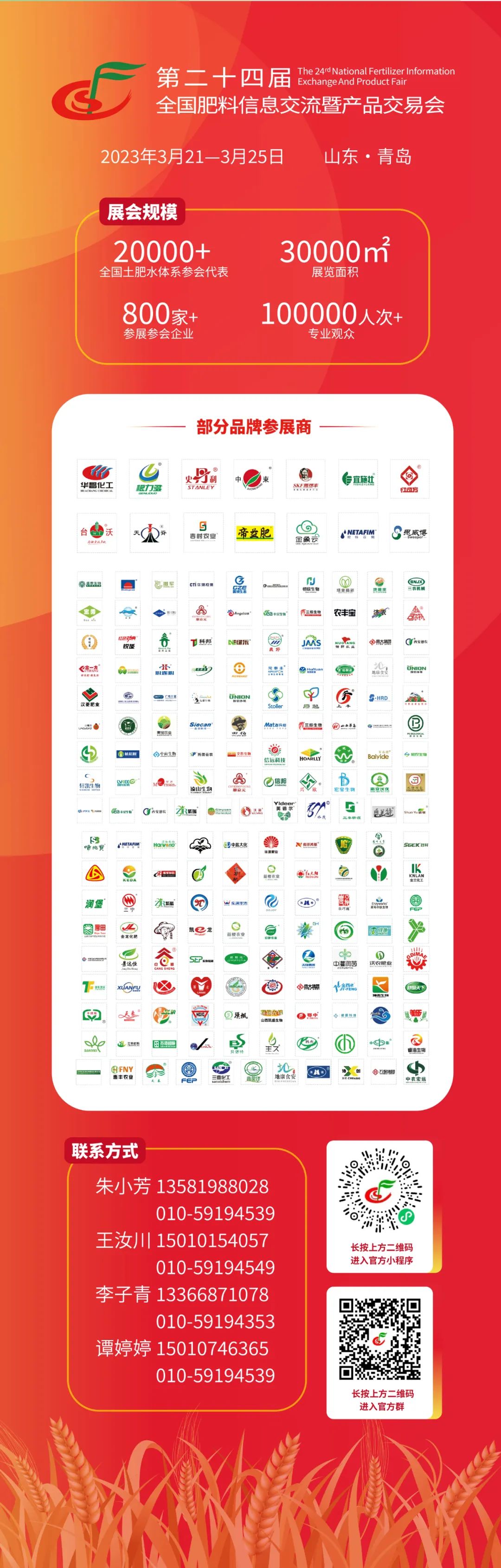 第二十四届全国肥料信息交流暨产品交易会(以下简称“全国肥料双交会”)定于2023年3月21—25日在青岛举办,为持续服务农业绿色高质量发展,积极宣传企业质量管控的先进理念、创新做法和突出典型,肥料和节水农业产品在技术创新、质量提升和减量增效等方面的良好效果,组委会决定开展优秀肥料企业,优秀有机肥料企业,最具成长型企业,优秀新型肥料产品,节水农业与智慧农业先进技术、产品、装备等五大遴选活动。