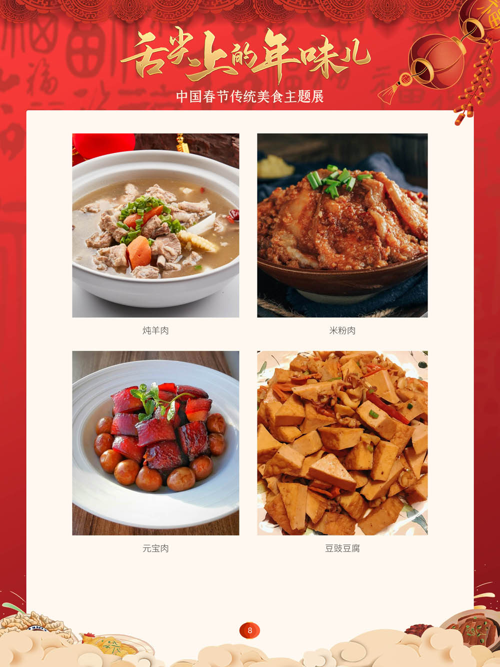 值此新春佳节来临之际,我们特别策划了“舌尖上的年味儿——中国春节传统美食主题展”,分“年夜饭简史”“中国各地春节传统美食”“中国各民族春节传统美食”三个部分,以图文并茂的形式展示我国各地、各民族的春节传统美食,彰显中华传统饮食文化的魅力,并引导大家通过本展览深入了解中国春节饮食文化,感受优秀传统文化的独特魅力。