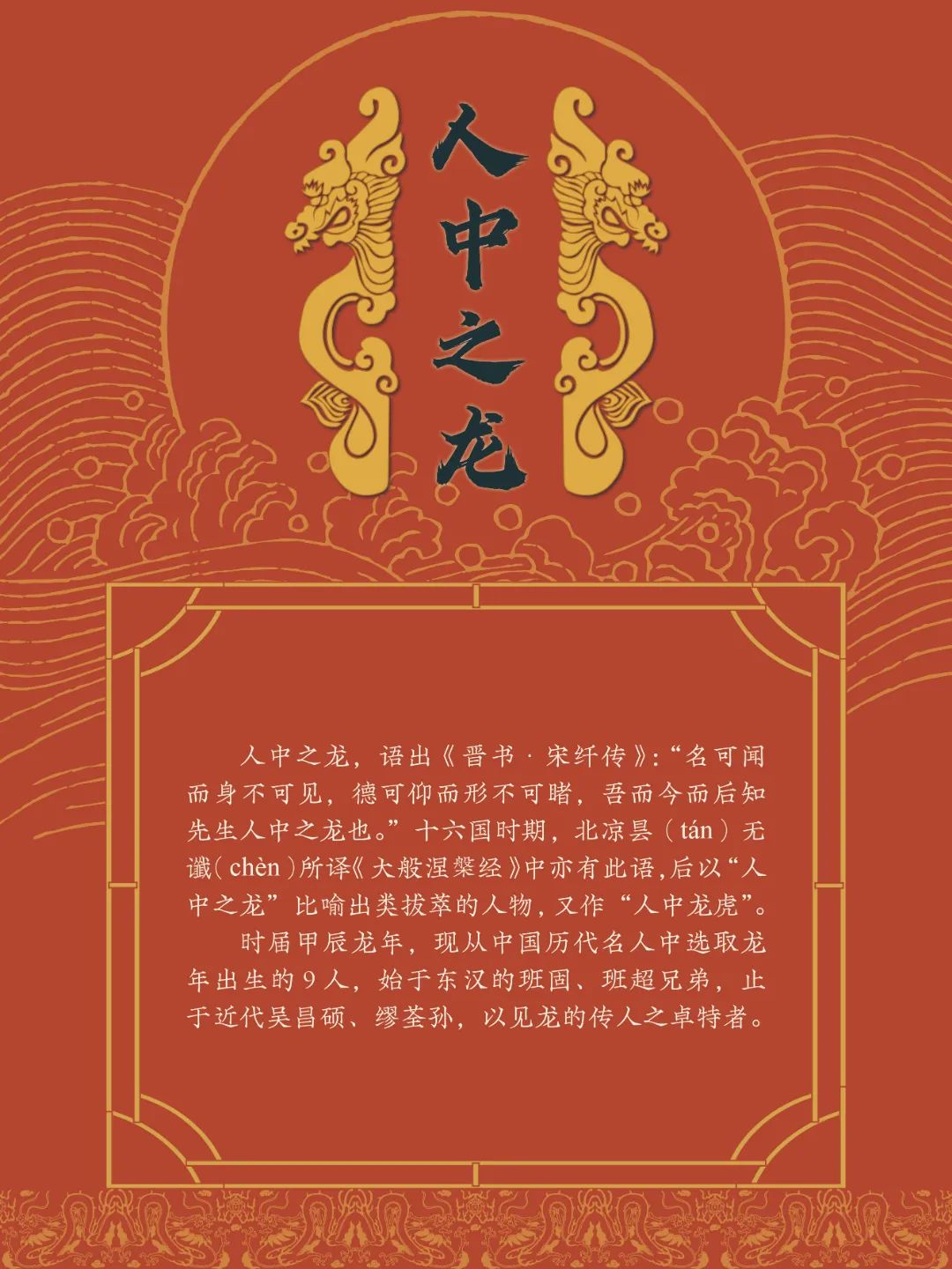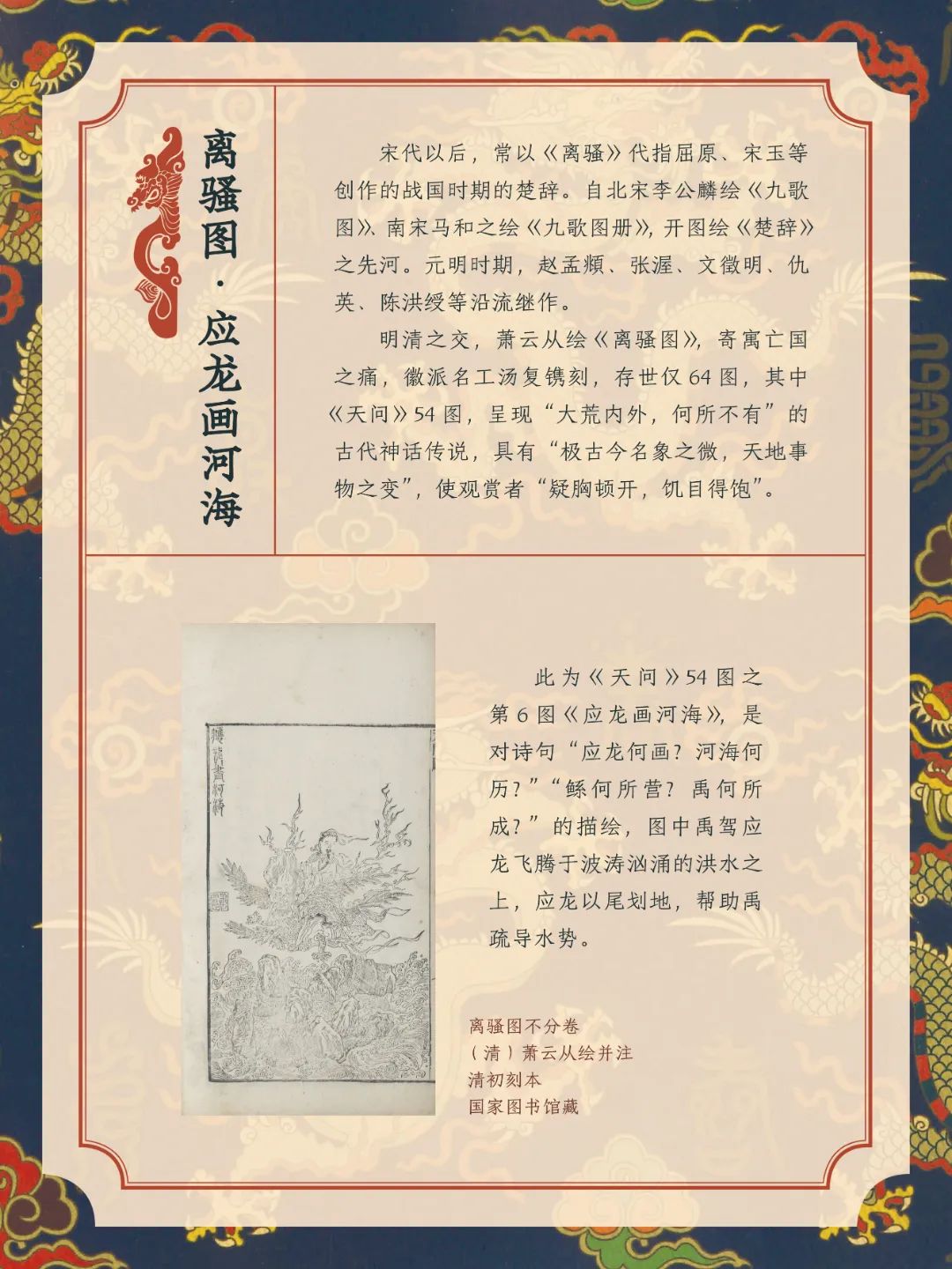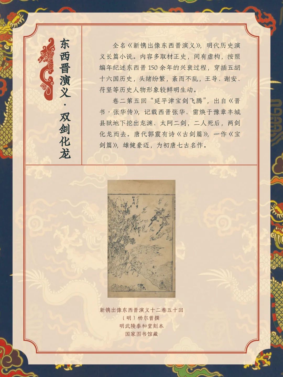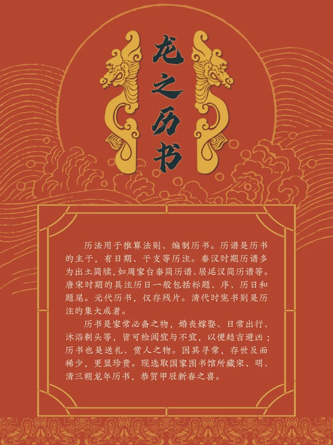中国龙横空出世,已逾八千年。龙从远古图腾、古老星象、神人坐骑、端午风俗,至汉代定型为帝王化身。龙高踞九重宫阙,也活跃于百姓日常,融入文学艺术和民族情感中,几乎无所不在。本次展览将从“龙之为字”“龙之形貌”“龙之历书”“人中之龙”“典籍载龙”五个单元,带领读者深入了解作为中华民族之象征的龙文化,为甲辰龙年增添一抹书香。