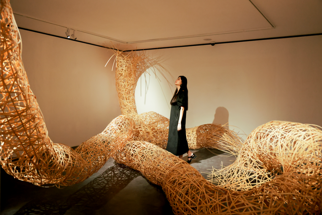 参展艺术家纪馥君致力于将现代的审美化融合到竹编艺术这门非遗传统手工艺术门类中,以沉浸式的空间营造一种五感艺术观感。