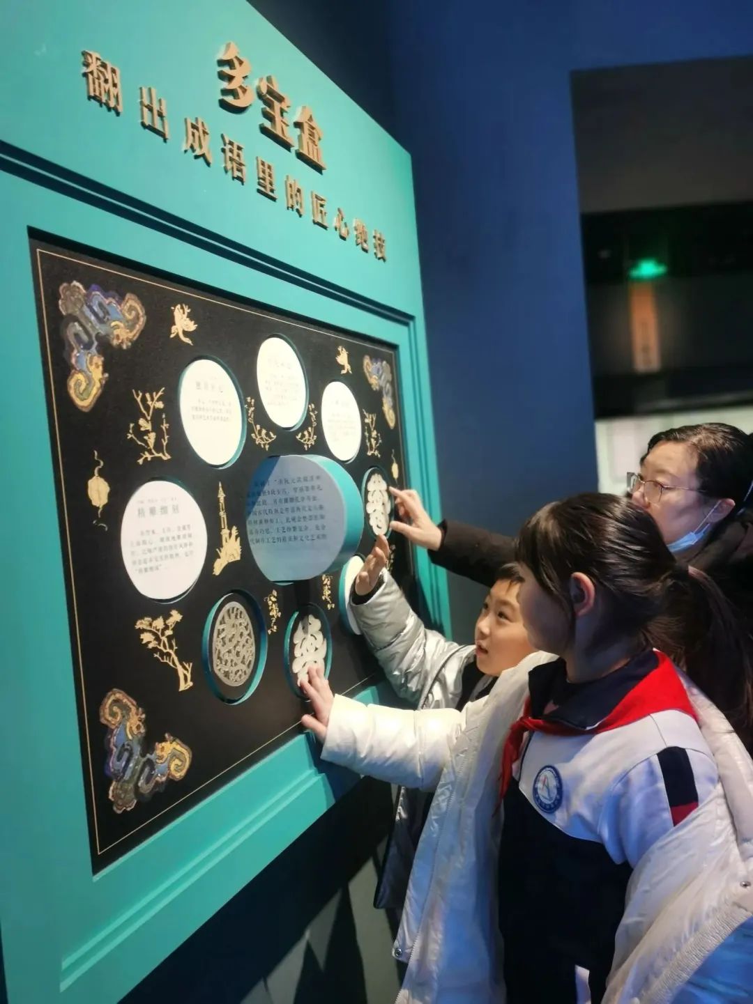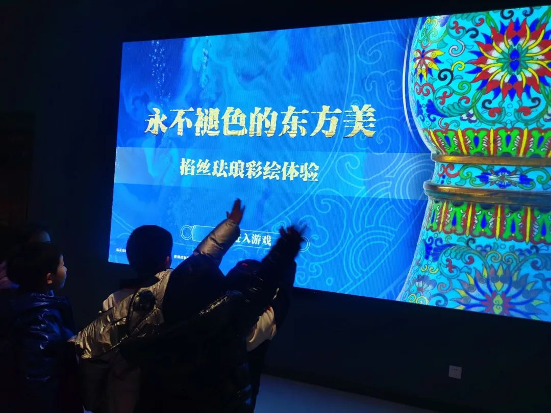 活动中,不仅有参观浏览,还有互动体验,通过高科技手段参与“互动魔墙”和“掐丝法琅彩绘”体验,队员们在动手实践中更加立体地感受到了浓厚的文化气息,加深了对历史文化的体验和印象。