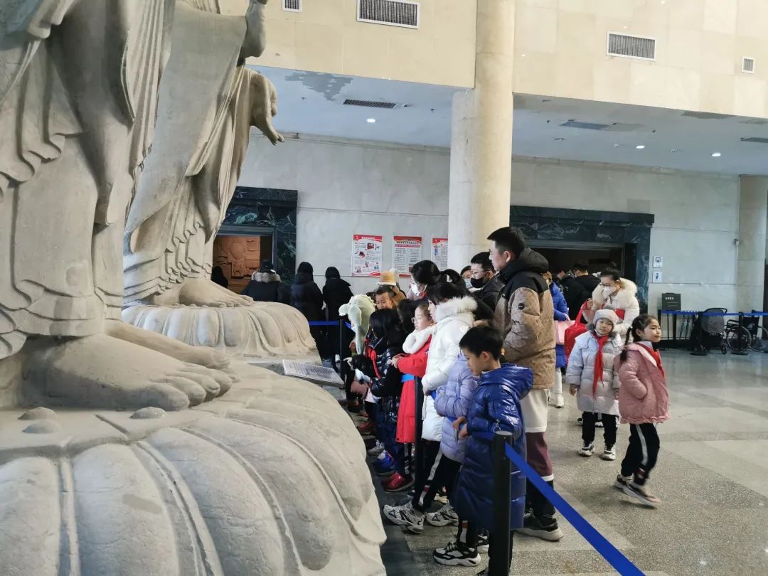 进入馆内大厅,映入眼帘是镇馆之宝之——两尊北魏时期的石造佛像,距今已有1500多年历史。它们是目前我国唯一保存完整的“两佛并立”式北朝佛造像,被誉为魏晋南北朝时期佛教造像艺术的杰出之作。每尊佛像身高一丈八尺,重约30吨,采用石灰岩材质以单体圆雕法一气呵成。石佛像造型优美,雕刻技法娴熟,神态栩栩如生,给人留下深刻印象,并且还洋溢着一缕缕饱经沧桑的历史感,一层层充满文化底蕴的厚重感。