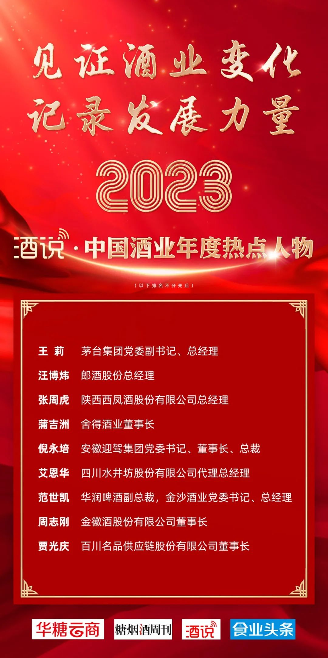 立足2024新起点,为记录酒业发展的重要时刻,向引领中国酒业前行的榜样人物们致敬,酒说从2024年2月11日起,将陆续发布“2023中国酒业年度热点人物”系列文章,敬请大家持续关注!