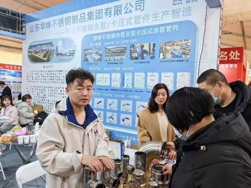 春节过后的戴南,蓝天白云,暖阳高照。2024年2月13日,农历正月初四,连续举办7年的戴南第七届不锈钢产品展览会暨第二届戴南工业产品及设备博览会在中国不锈钢名镇-戴南隆重开幕。来自浙江、广东、深圳及周边地区和本土的480多家企业,在这里搭建销售平台,“买世界、卖世界”盛况空前。山东省不锈钢行业协会常务副会长单位、山东省国资委权属企业水发集团旗下-山东华烨不锈钢制品集团有限公司生产的不锈钢水管参展亮相。