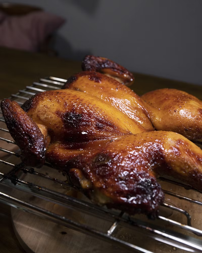 想象一下你在吃烤鸡,这时需要没那么重但是又提味的酒,黑皮诺就很适合。
